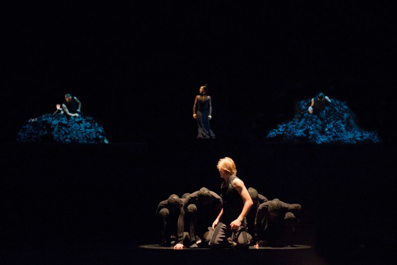 Wie in Prosper Mérimées Novelle, sozusagen die Mutter aller Carmen, erzählt Montero die Geschichte aus dessen Perspektive – und verwirrt diese mit einer Vervierfachung der Hauptfrau: Sophie Antoine, Sayaka Kado und Jaione Zabala fächern die Figur zur tänzerisch variantenreichen Trinität auf, während Esther Jurado wie eine schwarzgewandete Schicksalsgöttin die von Montero so genannte „Ur-Carmen“ gibt. Mit Flamenco und Kastagnetten symbolisiert sie die unwiderstehliche Verführerin.