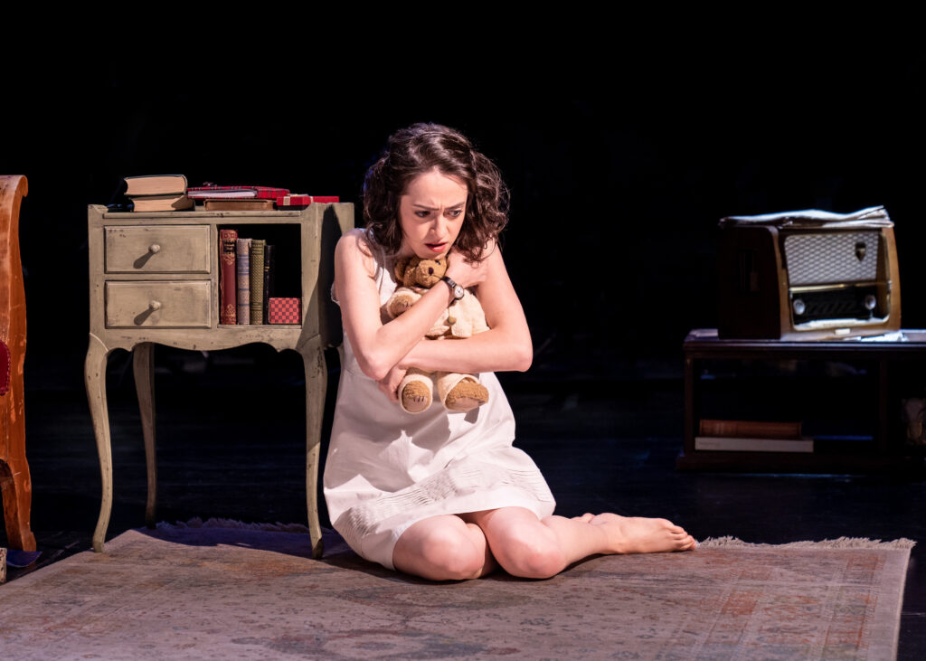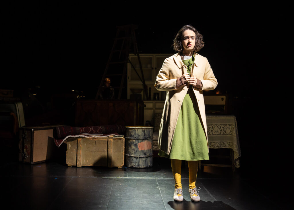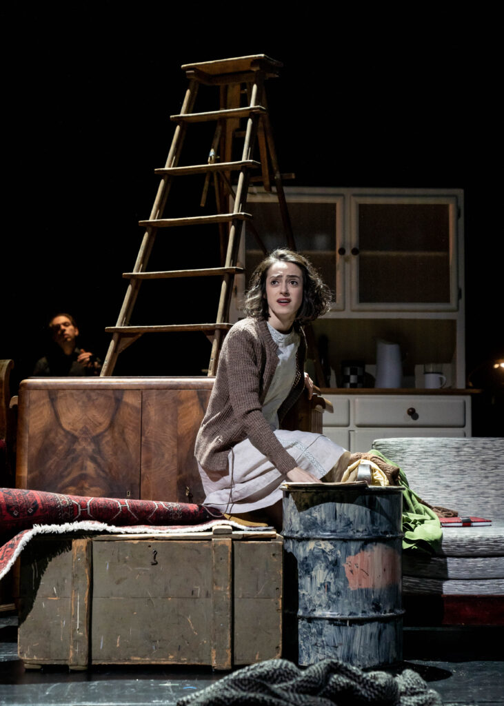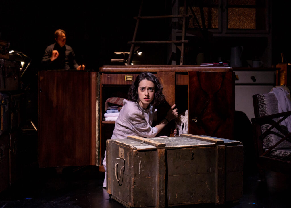 Zum gewaltigen Eindruck trägt das fein getaktete Spiel mit dem Raum bei. Verena Hemmerlein stellt Teppich, Schrank, Bett, Sessel auf die Vorbühne. Damit kommt uns das Geschehen zum Greifen nahe. Wenn die Musik schweigt, vernehmen wir Anne Franks Atem. (…)