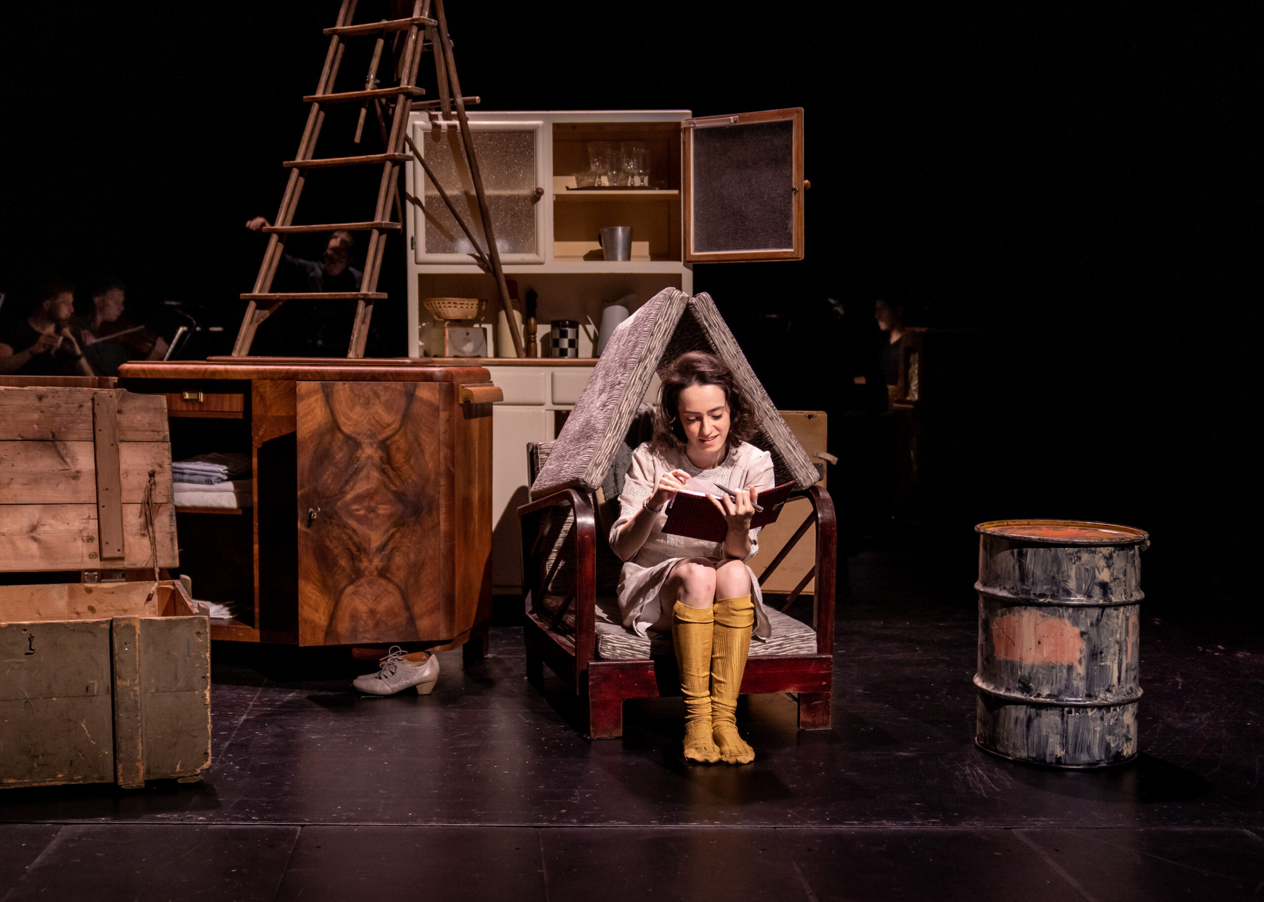 Zum gewaltigen Eindruck trägt das fein getaktete Spiel mit dem Raum bei. Verena Hemmerlein stellt Teppich, Schrank, Bett, Sessel auf die Vorbühne. Damit kommt uns das Geschehen zum Greifen nahe. Wenn die Musik schweigt, vernehmen wir Anne Franks Atem. (…)