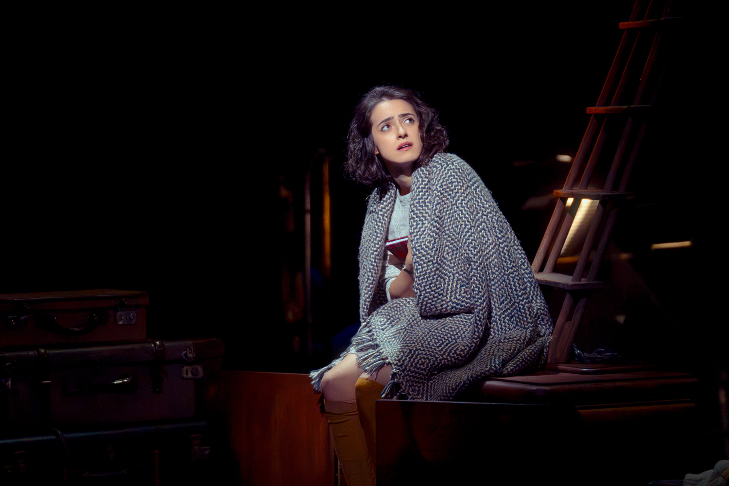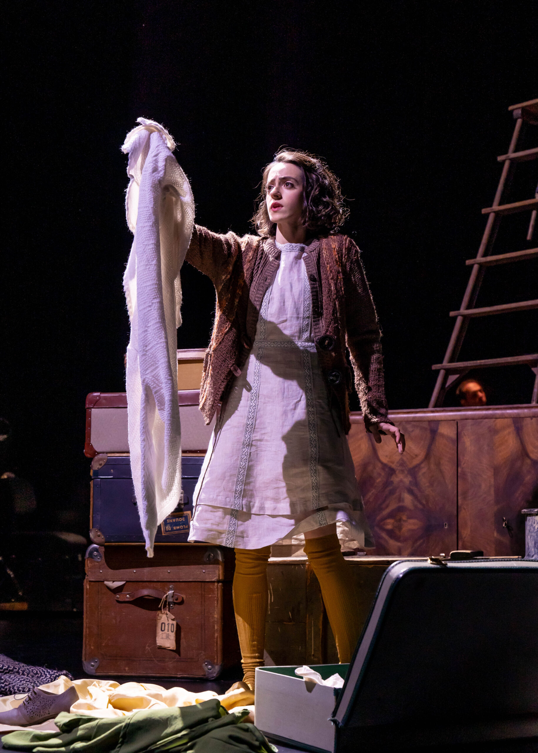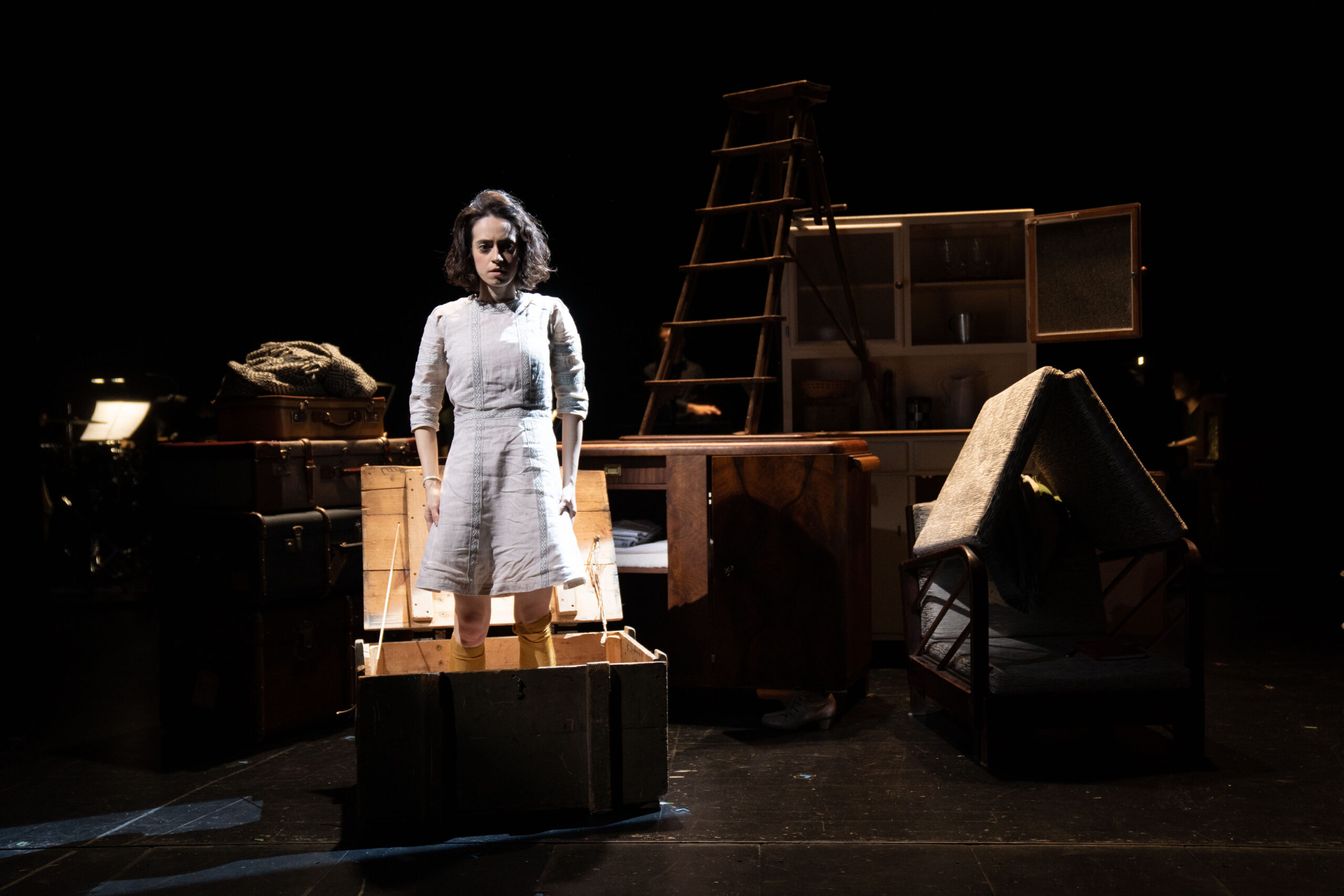 Das Licht stammt von Wim Wermuth. Zusammen mit der Musik von Grigori Fred umspielt es als klug bewegte kubistische Komposition Anne Franks Situation, Gestalt und Geschichte. Für den Abschnitt welchen die junge Frau zwischen 13 und 15 Jahren im Tagebuch festgehalten hat, lassen die Scheinwerfer tausend Facetten aufdämmern aufglänzen, aufstrahlen. Mal stellen sie das Gesicht der Heranwachsenden in dramatische Profilschatten, mal rücken sie es durch die Flüchtigkeit mittelalterlicher Andachtsbilder in eine jenseitige, selbstversunkene Ferne.