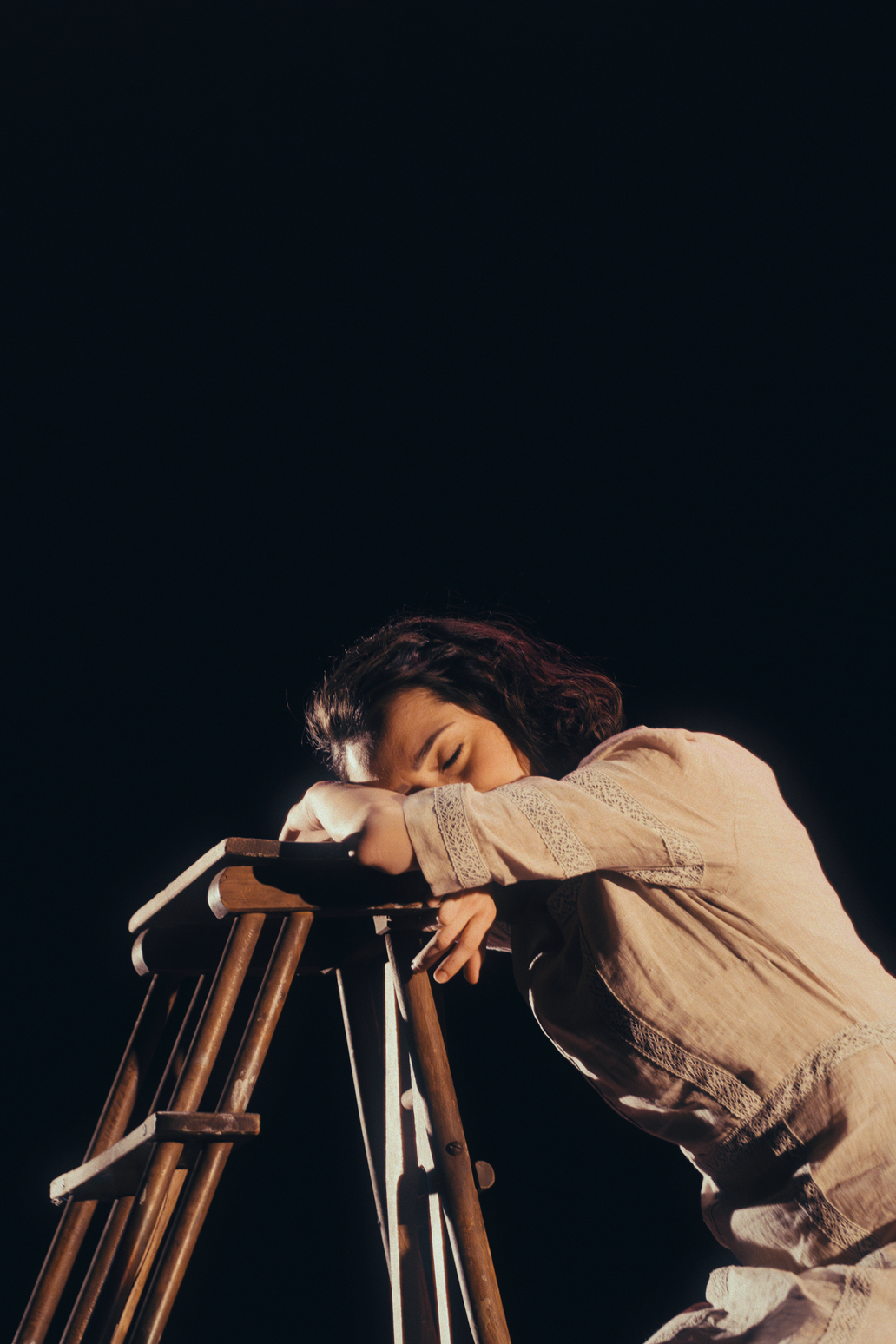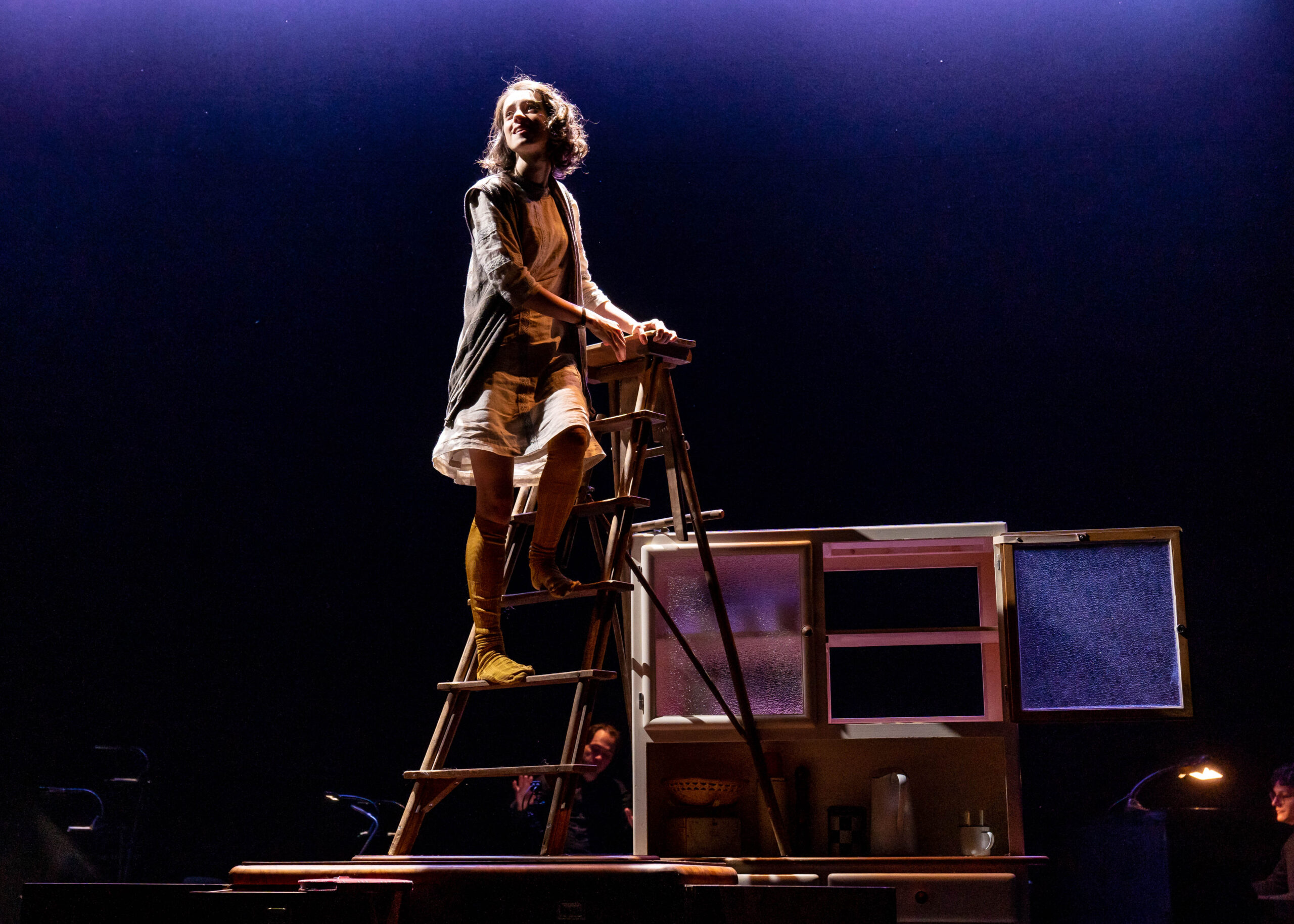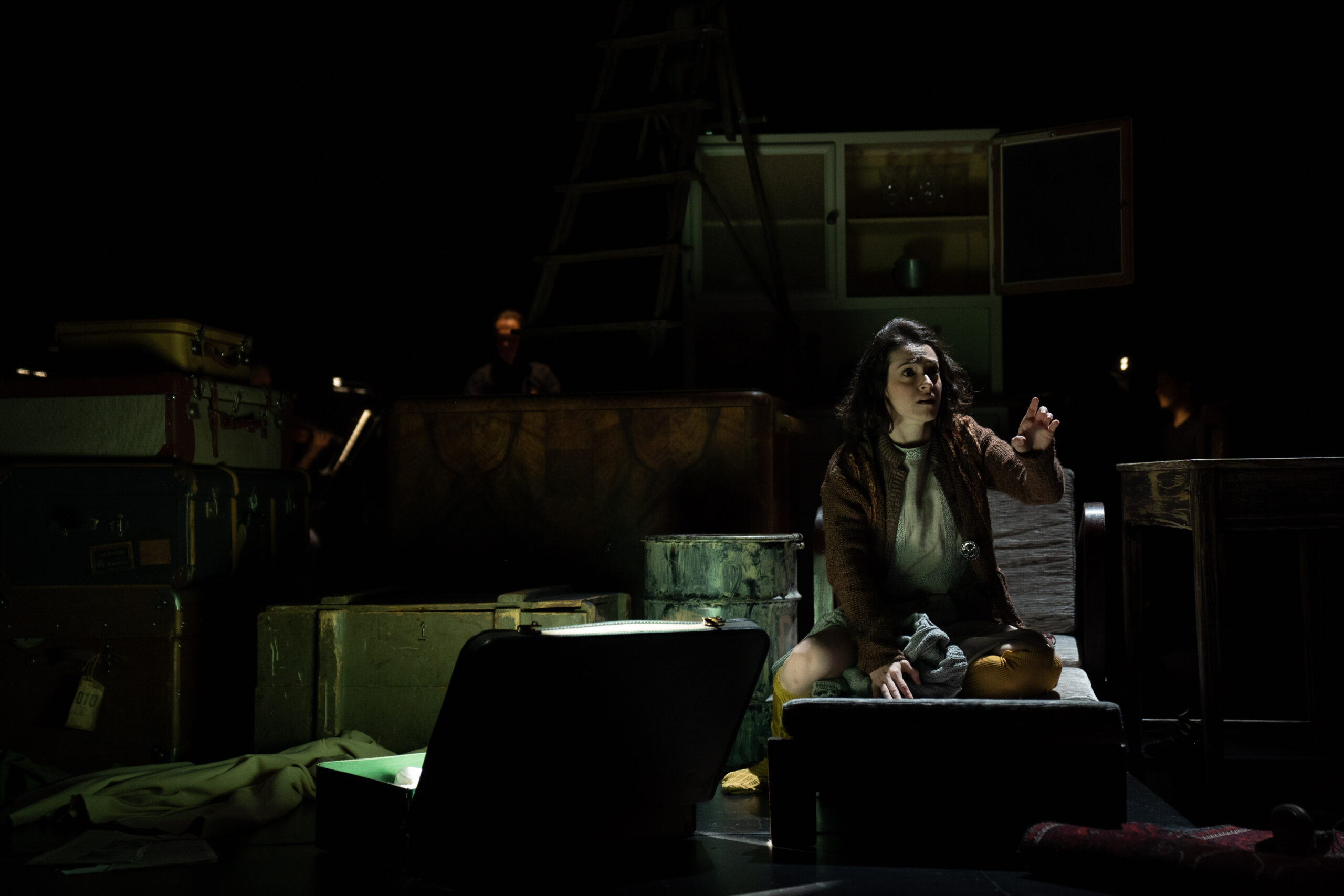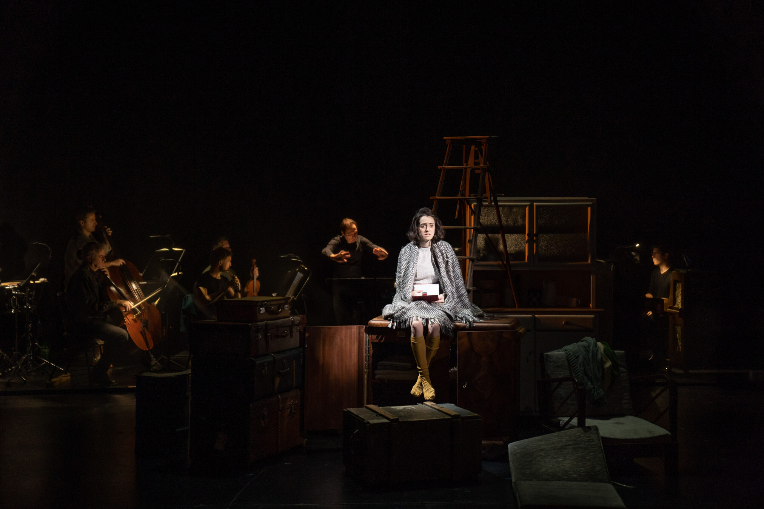 Das Licht stammt von Wim Wermuth. Zusammen mit der Musik von Grigori Fred umspielt es als klug bewegte kubistische Komposition Anne Franks Situation, Gestalt und Geschichte. Für den Abschnitt welchen die junge Frau zwischen 13 und 15 Jahren im Tagebuch festgehalten hat, lassen die Scheinwerfer tausend Facetten aufdämmern aufglänzen, aufstrahlen. Mal stellen sie das Gesicht der Heranwachsenden in dramatische Profilschatten, mal rücken sie es durch die Flüchtigkeit mittelalterlicher Andachtsbilder in eine jenseitige, selbstversunkene Ferne.