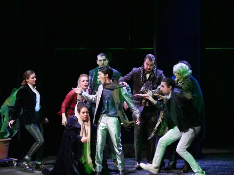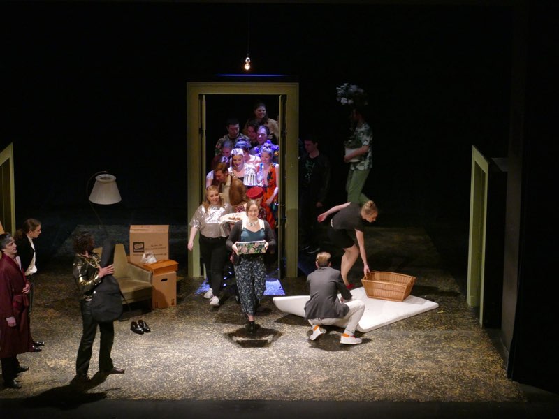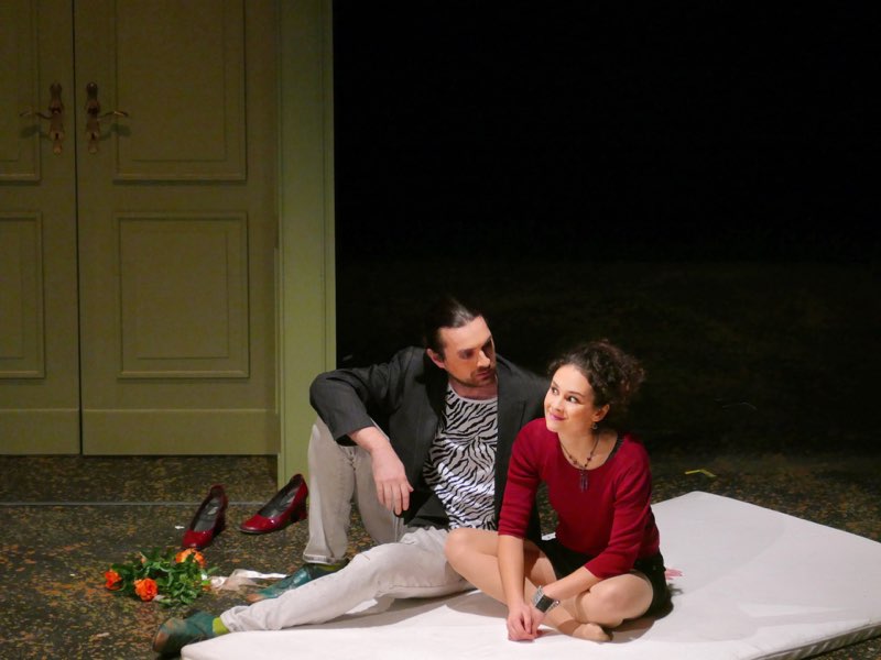 Im Würzburger Theater in der Bibrastraße nun begeistern die Studenten der Opernschule der Würzburger Hochschule für Musik mit ansteckender Spielfreude und hervorragender stimmlicher Gestaltung. Das liegt zum einen an der geschickten, in jeder Bewegung auf die Musik reagierenden Inszenierung und der überzeugenden Charakterzeichnung durch Regisseurin Katharina Thoma. Sie kürzt sinnvoll, etwa in der Verkleidungsszene, lässt die deutschen Übertitel „moderner“ übersetzen, zum anderen können sich in der Ausstattung durch Verena Hemmerlein die Agierenden einfach wohlfühlen, mit ihren Rollen identifizieren. Die Handlung geschieht im Heute, und die jeweiligen Räume werden nur angedeutet durch Türen, Fenster oder Samthänger im letzten Akt, im Garten, der mit grüner Beleuchtung eine geheimnisvolle Stimmung erhält, während blaues Licht vorher auf Unsicherheit oder Befürchtungen hinweist. Alles beginnt in einem leeren Raum: Figaro, der das Zimmer einrichten will, schleppt Karton und Matratze herein, und als die Tüte mit Schrauben platzt, fallen diese herunter; er zählt sie ab, eine vergesene Schraube verhindert eine zärtliche Szene der beiden auf der Matratze – beide sind im Ikea-Zeitalter angekommen. (…)