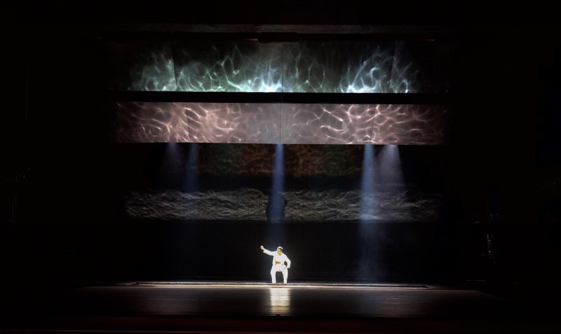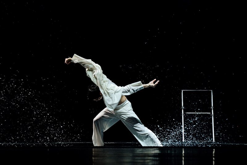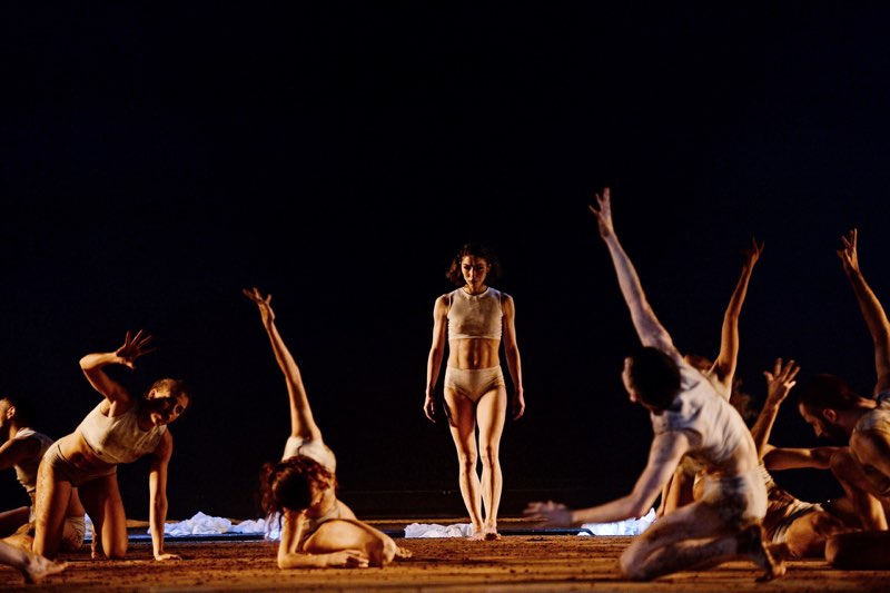 (…) Als Kunstgriff lässt der Choreograf seine Tänzer dazu in einem flachen Becken aus Wasser agieren. Heraus kommt neben den sich spiegelnden Wellenmustern an der Decke das Spiel mit Tropfen, Fontänen, Kaskaden. Nicht minder effektvoll ist der Umgang mit einem zweiten der vier Elemente, der Erde. Sutherland führt es sinnfällig zum ersten Teil „Anbetung der Erde“ von Strawinskys Ballettmusik ein, die den dritten und letzten Teil des Abends einnimmt. Assoziationen zum Topos Mutter Erde werden greifbar, wenn sich die Tänzer in ihr suhlen, mit ihr umherwerfen, sich mit ihr einreiben.